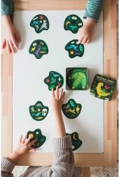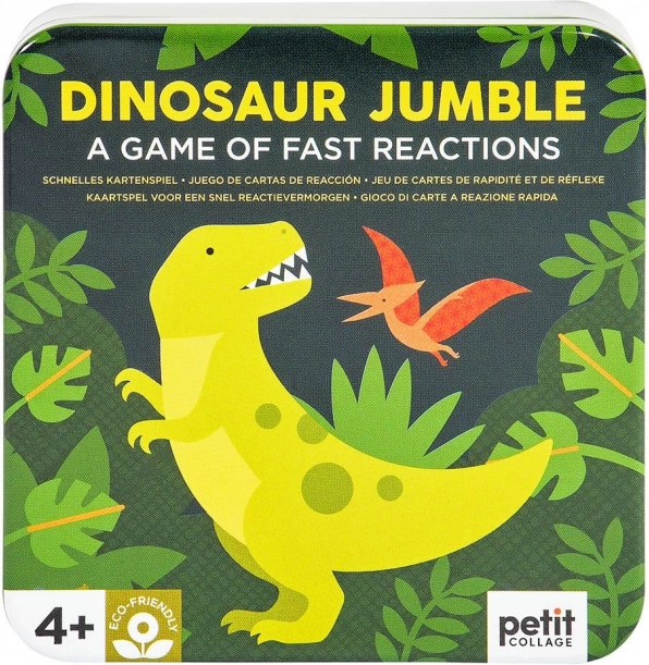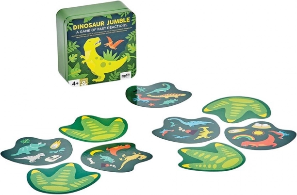 Vježbajte svoju uočljivost s dinosaurima. Ova kartaška igra nudi do pet varijanti pravila i prepuna je šarenih ilustracija s motivima dinosaura. Sigurno ćete je brzo zavoljeti i zbog njezine kompaktne veličine, pa je pogodna za igru kod kuće i na putovanjima. Pakirano u metalnoj kutijici bez upotrebe plastike. Glavne značajke za 2–6 igrača 5 varijanti pravila praktično pakiranje Upute za igru: Osnovna varijanta: Svakom igraču podijelite jednu kartu licem prema dolje. Špil okrenut licem prema gore stavite između igrača. Na dogovoreni znak igrači okreću svoje karte. Igrač koji prvi prijavi isti simbol na svojoj karti i karti na špilu uzima kartu sa špila. Tako se špil na kraju razdijeli, a pobjednik je igrač s najvećim brojem karata. Obrnuta varijanta: Podijelite karte među igrače tako da svi drže isti broj karata i jedna karta ostane. Igrači svoje karte u špilu stave ispred sebe licem prema dolje. Preostalu kartu, okrenutu licem prema gore, stavite između igrača. Na dogovoreni znak igrači okreću gornju kartu svog špila. Tko prvi prijavi simbol koji je isti na svojoj karti i karti među igračima, svoju kartu odlaže među igrače na nastajuću hrpicu i okreće svoju sljedeću gornju kartu. Tako igra traje dok ne ostane posljednji igrač s kartama, koji time postaje poražen. Igrač koji se prvi riješi svojih karata je pobjednik. Skupna varijanta: Igra se u rundama. U svakoj rundi se ispred svakog igrača podijeli po jedna karta licem prema dolje. Na dogovoreni znak igrači okreću svoju kartu, a onaj koji imenuje i prijavi simbol koji se podudara sa simbolom na karti drugog igrača svoju kartu mu predaje. Igra se nastavlja dok jedan igrač ne primi sve podijeljene karte u toj rundi. Cilj igre je rješavati se karata; igrač koji je u zbroju rundi primio najviše karata je poražen. Dimenzije pakiranja: 10 × 10,5 × 5 cm Dob: 4+ Materijal: metal, papir Broj dijelova: 31 kom