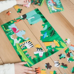 Ova kvalitetna dječja slagalica nudi dva jedinstvena dizajna s prijateljskim životinjama iz džungle. Zahvaljujući 49 dijelova idealna je za djecu od 5 godina naviše, koja će pri slaganju vježbati koncentraciju i uočavanje detalja. Praktično putno pakiranje omogućuje ponijeti zabavu svuda sa sobom.
