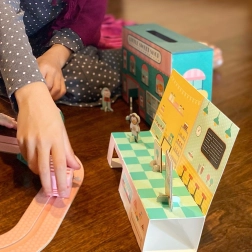 Izrađeno s obzirom na planet – korišteni karton, papir i drvo nose FSC certifikat, a ambalaža je u potpunosti bez plastike. Set potiče finu motoriku, maštu i igranje uloga za djecu od 3 godine naviše.