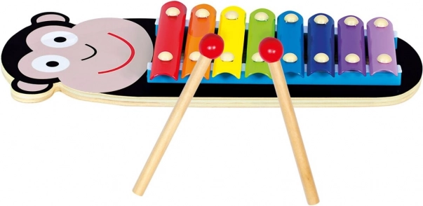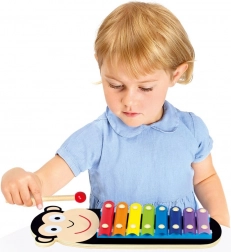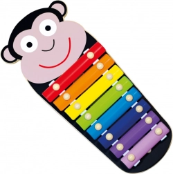 Dječji metalofon s motivom majmunčića. 3-dijelni set s 8 metalnim zvučnim pločicama koje omogućuju sviranje u punom rasponu. Metalofon djeci nudi priliku upoznati osnove glazbe i razvijati svoj glazbeni talent. Idealan je kao igračka za prve dječje glazbene korake. Neškodljive boje, zaobljeni rubovi i glatke površine osiguravaju bezbrižne glazbene trenutke. Prikladno za djecu od 18 mjeseci. Upozorenje! Za djecu mlađu od 18 mjeseci koristiti samo pod nadzorom odrasle osobe. Glavne značajke: 3-dijelni set, 8 zvukova, razvija glazbeni talent