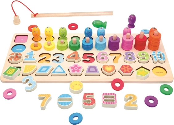Igra uključuje različite elemente koje djeca mogu koristiti za ribolov, slaganje brojeva ili stavljanje prstena jedan na drugi. Svi dijelovi su dizajnirani tako da ih male dječje ruke mogu lako uhvatiti, što potiče njihovu samostalnost i kreativno istraživanje.