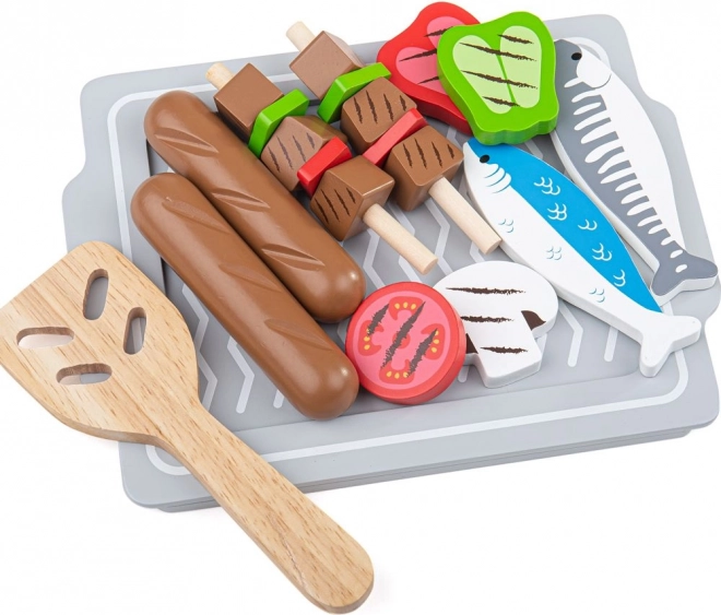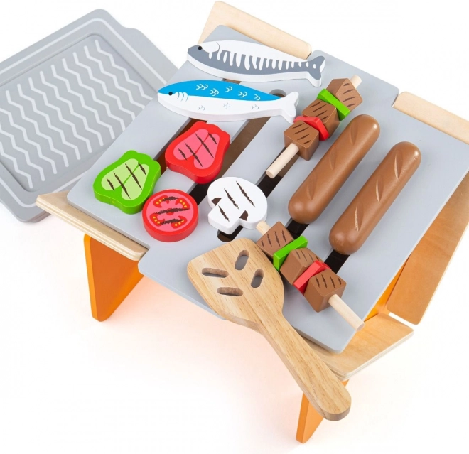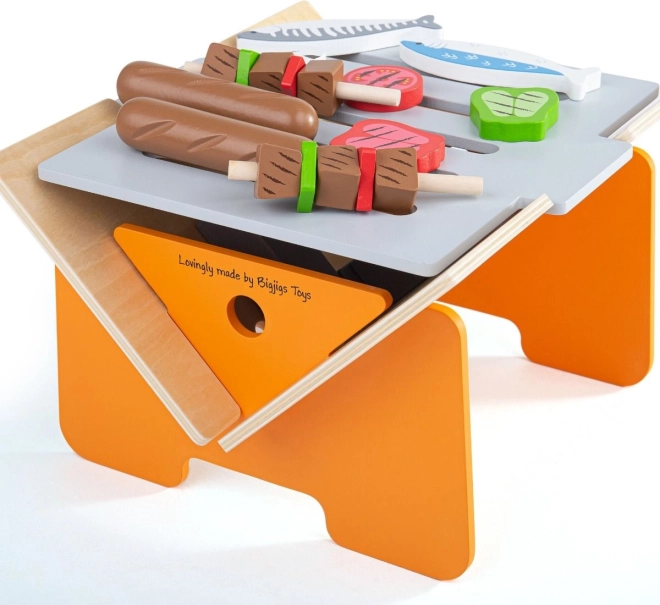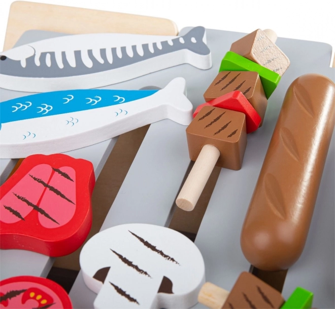 Priredite vrtnu zabavu s drvenim stolnim roštiljem Bigjigs Toys! Sadrži 10 komada hrane, lopaticu, poslužavnik i ugljen. Jednostavno sastavljanje bez vijaka. Izrađeno od održivih materijala.