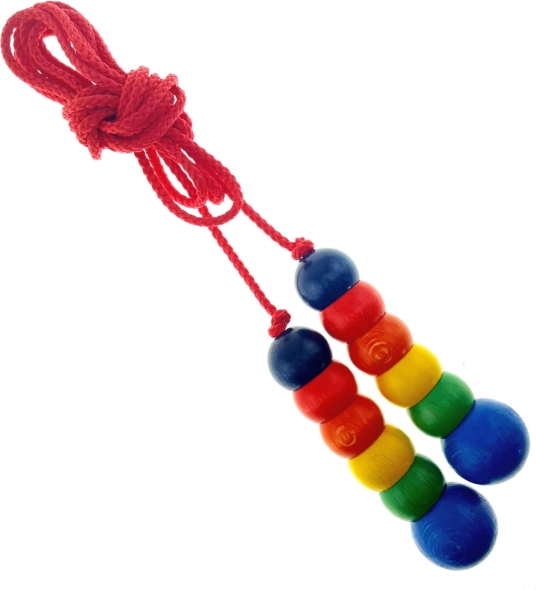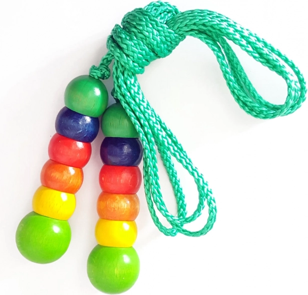 Klasična šarena vijača HESS s drvenim ručkama za djecu od 3 godine. Zahvaljujući podesivoj duljini od 2,3 m raste s djetetom, potiče razvoj motorike i koordinacije te je izrađena od ekološkog drva s izdržljivim, sigurnim bojama.