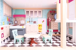 Kućica nudi kuhinju, dnevni boravak, kupaonicu i spavaću sobu, sve u šarenom izdanju s realističnim dodacima za uranjajuću igru.