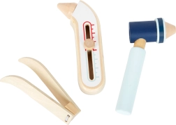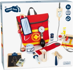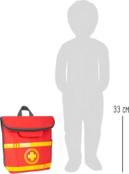 Ovaj spasilački ruksak idealan je za dječju igru doktora. Unutra ćete pronaći drvene alate kao što su stetoskop, toplomjer, otoskop s povećalom pa čak i defibrilator. Djeca mogu naučiti prepoznavati medicinsku opremu i simulirati spasilačke postupke.