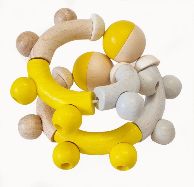 Hess drveno zvečkalo u žutoj boji idealno je za razvoj motoričkih vještina vašeg djeteta. Izrađeno od visokokvalitetnog, ekološki obrađenog drva, nudi kreativne mogućnosti zahvaljujući osam dijelova na elastičnoj vrpci.