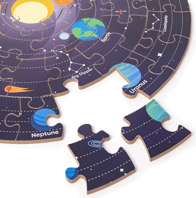 Ovaj proizvod spaja igru i učenje, jer svako slaganje dijelova razvija kognitivne sposobnosti i znanje o Sunčevu sustavu. Puzzle su izrađene od materijala visoke kvalitete i odgovornog porijekla, koji ispunjavaju stroge europske sigurnosne norme.