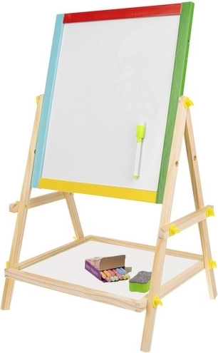Odličan izbor za učenje kod kuće, predškolske aktivnosti i slobodnu igru. Ploča zabavlja i razvija – vježba koncentraciju, strpljenje i pamćenje. Donja polica za pribor drži markere, krede i spužvicu uvijek pri ruci.