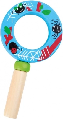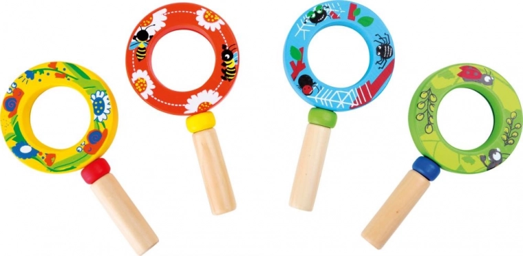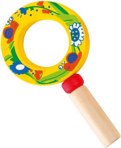 Ova kvalitetna dječja lupa spaja čvrstu drvenu ručku i lagani plastični lećni element kako bi bila sigurna i udobna za male ruke. Vesele ilustracije kukaca i cvijeća motiviraju djecu na otkrivanje detalja okolnog svijeta – od cvjetova do sitnih buba.