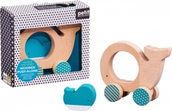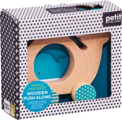 Ova stilska i sigurna drvena igračka donosi djeci radost kretanja i otkrivanja. Zaobljeni oblici odlično leže u malim ručicama, u sredini tijela kita nalazi se otvor sa slobodno smještenom figuricom mladunčeta koja potiče interaktivnu igru i poboljšava koordinaciju oko–ruka.