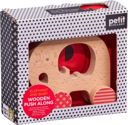 Ovaj elegantno zaobljeni slon na kotačima s izvadivom figuricom mladunčeta odličan je izbor za prve dječje igračke. Zahvaljujući sigurnim materijalima i kvalitetnoj izradi donosi veselje i mir roditeljima – drvo s FSC certifikatom, boje na bazi vode i ambalaža od recikliranog kartona nježni su prema djeci i planetu.
