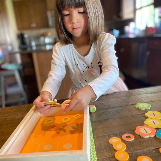 Pomozite pčelama prikupljati nektar i praviti med s ovom šarenom drvenom igrom za 2 igrača. Učite o značaju pčela u prirodi i uživajte u praktičnom pakovanju igre.