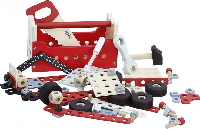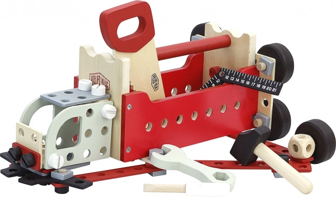 Tražite igračku koja će razvijati motoričke vještine i kreativno razmišljanje vaše djece? Obostrana kutija s alatom Vilac pravi je izbor! Ovaj set sadrži čak 96 dijelova koji omogućuju sastavljanje modularnih konstrukcija poput teretnog vozila, dizalice ili čak robota. Dizajn Ateliera Vilac jamči kvalitetnu izradu i atraktivan vintage izgled. Djeca će se moći okušati u ulozi malog majstora i uljepšati svoje kraljevstvo igračaka.