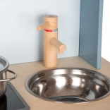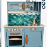 Ova drvena kuhinjica pruža djeci sjajan prostor za maštovitu igru. Opremljena je elektroničkom pločom za kuhanje sa svjetlosnim i zvučnim efektima te izvlačnom napom s osvijetljenim simbolom. Okretni gumbi stvaraju autentičan zvuk za još realističniji doživljaj. Izvadivi pleh može se koristiti kao ploča za pisanje, što dodaje univerzalnost igri.