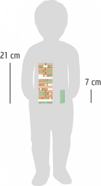 Igru mogu savladati djeca već od 3 godine, a možete je prilagoditi dobi i vještinama igrača – igrajte klasično ili dodajte drvenu kocku za nove izazove. Pakiranje 2-u-1 dodatno olakšava slaganje i sigurno spremanje elemenata.