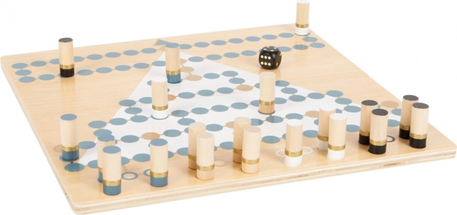 Ovo dizajnersko izdanje donosi dvije omiljene društvene igre u jednoj. Na jednoj strani je Halma za promišljena pomicanja figurica, a na drugoj Barikade (Malefiz) s napetim blokiranjem protivnika. Prirodna struktura drva i profinjeni Gold Edition izgled čine igru ne samo izvrsnom zabavom, već i stilskim dodatkom interijeru.
