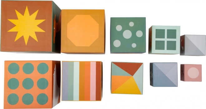 Raspon veličina kocaka od najmanje 5 cm do najveće 14 cm uči djecu uočavati veličine i redoslijed. Lagani, čvrsti karton lako se drži i nježan je prema namještaju.