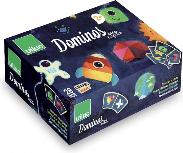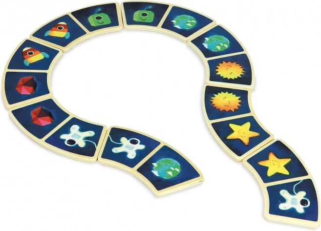 Zabavno i edukativno svemirsko domino za djecu s 28 drvenih pločica za razvoj kreativnosti.
