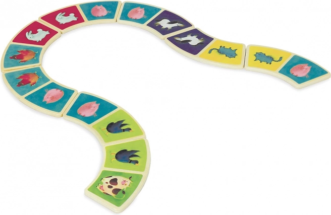 Obogatite igru svoje djece ovim originalnim setom domina s prekrasnim motivom farme brenda Vilac. Zahvaljujući zaobljenom obliku pločice domina nisu samo jedinstvene, već su i lako prihvatljive čak i malim dječjim rukama. Set sadrži ukupno 28 drvenih pločica koje će pružiti beskrajne sate zabave. Igra domino doprinosi razvoju pažnje, fine motorike i logičkog razmišljanja.