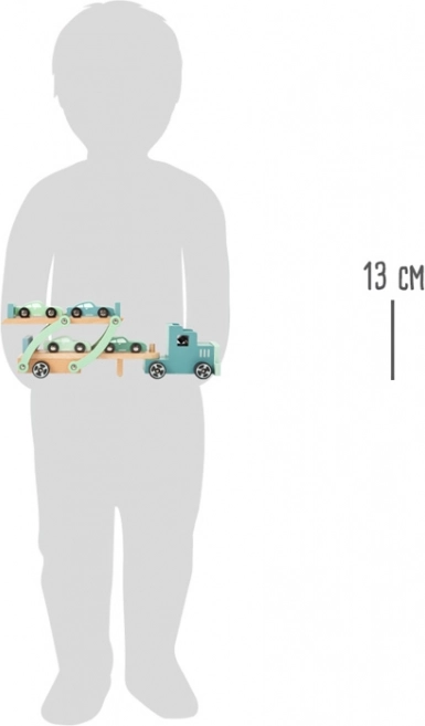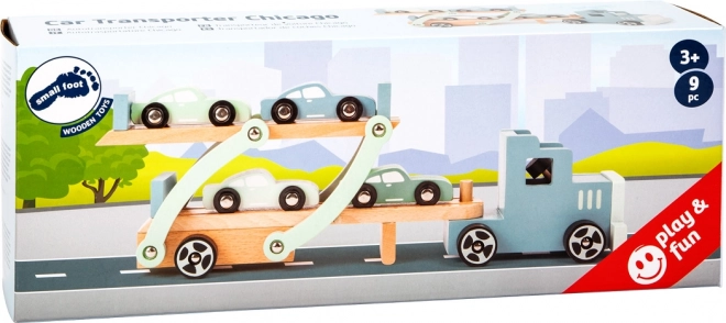 Otkrijte robustan drveni kamion s prikolicom Chicago brenda small foot, koji prevozi do četiri autića i oduševit će djecu od 3 godine. Zahvaljujući preklopnoj gornjoj palubi i utovarnoj rampi igra je glatka i zabavna. Cjelodrvena izvedba osigurava dug vijek trajanja i sigurno iskustvo igre. Stabilna drvena konstrukcija, preklopna prikolica za 4 auta i poticanje fine motorike i mašte čine ovaj transporter idealnom igračkom za dječju sobu.