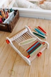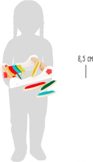 Kompaktna stolna konstrukcija s preglednim vođenjem osnove i jednostavnim provlačenjem potke djeci olakšava razumijevanje osnova tkanja već od prvog pokušaja.
