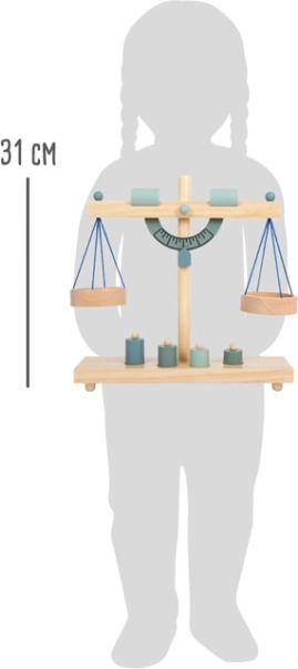 Tijekom usluživanja „kupaca” djeca uče komunikaciju, suradnju i poštenu razmjenu. Zahvaljujući kvalitetnom drvu s prirodnim izgledom i ugodnim sivo-plavim tonovima, vaga je ne samo izdržljiva nego i estetski privlačna te sigurna za dječje ruke.