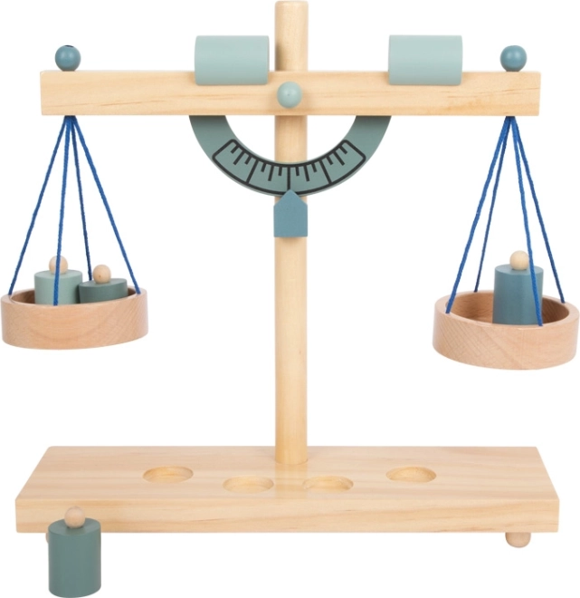 Ova stabilna drvena zdjelna vaga idealna je za dječju trgovinu i kuhinjicu. Dvije obješene zdjele i set od četiri drvena utega omogućuju djeci precizno vagati „proizvode” i razumjeti kako funkcionira ravnoteža. Pomični protutezi na rukama služe za fino podešavanje – izvrstan način za treniranje strpljenja i koncentracije.