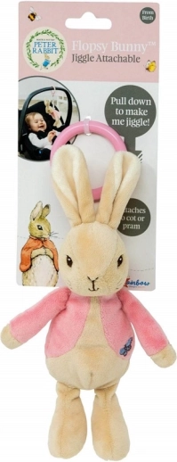 Ovaj plišani zeko Flopsy idealna je igračka za djecu od rođenja. Dizajniran je s obzirom na sigurnost i zabavu djece. Flopsy se lako pričvršćuje pomoću ružičastog plastičnog prstena na bilo koja kolica, auto-sjedalicu ili krevetić, što ga čini izvrsnim suputnikom na putovanjima.
