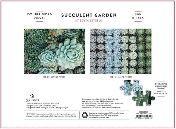 Uživajte u opuštanju uz stiliziranu dvostranu slagalicu sa sukulentima brenda GALISON. Set nudi 500 čvrstih dijelova, dvije različite ilustracije s obje strane i premium kvalitetu od recikliranog papira. Zahvaljujući sjajnoj i mat završnoj obradi lako ćete razlikovati strane, dok netoksične tinte i precizno uklopljeni dijelovi osiguravaju ugodno iskustvo za cijelu obitelj.