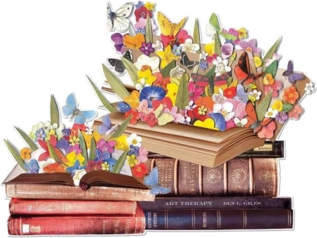 Uronite u kreativni svijet u kojem se literatura susreće s prirodom. Umjetnik Ben Gilles motivu cvatućih knjiga daje razigranu kolažnu estetiku, boje i svjetlo, stvarajući jedinstvenu atmosferu završne slike. Gotova slagalica jedinstveno je oblikovana i konturirana sve do ruba motiva, pa ističe svaki detalj.
