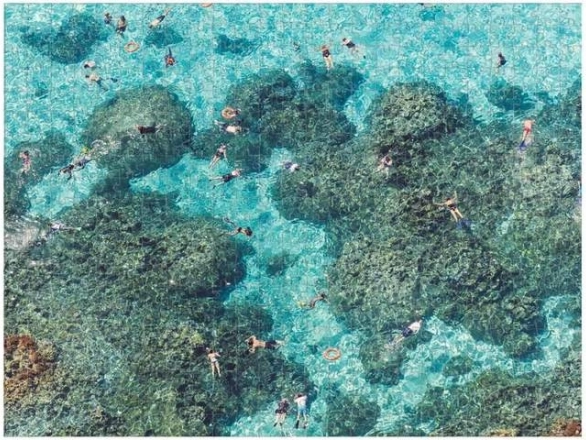Stilska dvostrana slagalica nadahnuta ikoničnim zračnim fotografijama Gray Malin donosi atraktivan izazov i ujedno dekorativan rezultat. Jedna strana prikazuje užurbanu plažu iz ptičje perspektive, druga mirnu površinu oceana sa stijenama i plivačima. Zahvaljujući različitoj završnoj obradi (sjaj/mat) lako ćete prepoznati koju stranu upravo slažete.