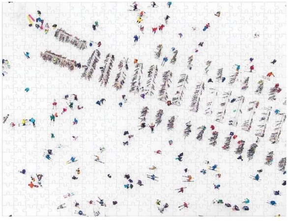 Otkrijte bezvremenske zračne snimke brenda GRAY MALIN u obliku premium dvostrane slagalice. Jedna strana vodi vas u mirnu zimsku scenu sa zasniježenim stablima, druga oživljava dinamikom šarenih skijaša na oštrom bijelom snijegu. Svaki dio savršeno pristaje, pa je slaganje glatko i zadovoljavajuće.