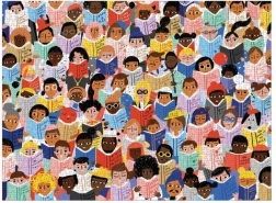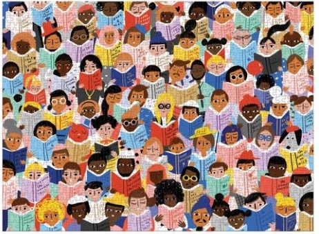 Uživajte u satima zabave s umjetničkim puzzleom koji donosi šarenu scenu ljudi uronjenih u knjige. Zahvaljujući kvalitetnoj izradi od recikliranog papira i korištenju netoksičnih tinti, ovaj je set odličan izbor za obitelji i ljubitelje dizajna. Gotove puzzle dimenzija 68,6 × 50,8 cm prekrasno će izgledati i u okviru.