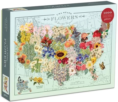 Uživajte u slaganju prekrasnih puzzli s ilustracijom popularne umjetnice Wendy Gold. Ove puzzle od 1000 dijelova prikazuju cvijeće pojedinih saveznih država SAD-a i izrađene su od vrhunskog recikliranog papira.