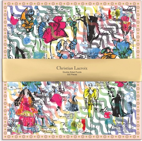 Stilna dvostrana slagalica s dizajnom CHRISTIAN LACROIX donosi 500 dijelova punih boja i elegancije. Na jednoj strani nalaze se modne skice s šarenim valovima, na drugoj obrnuta ilustracija za dodatni izazov. Slagalica je izrađena od recikliranog papira, ima vrhunsku kvalitetu izrade i UV-otpornu završnu površinu za dugotrajnu postojanost boja.