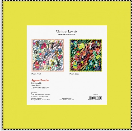 Otkrijte iznimnu dvostranu slagalicu Ipanema Girls brenda Galison s kultnim dizajnom CHRISTIAN LACROIX. Svaki dio oduševit će preciznošću i kvalitetnom površinskom obradom koja razlikuje strane na sjajnu i mat. Idealno za sve ljubitelje dizajna, mode i izazova.