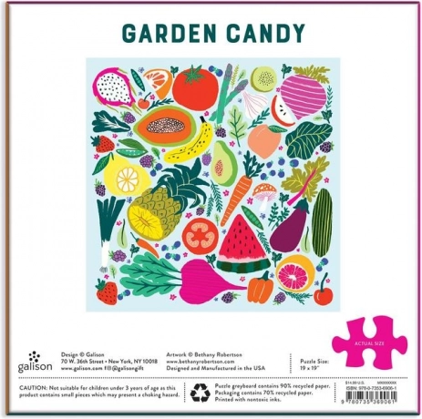 Uživajte u opuštanju s prekrasnim puzzleom GALISON Slatki vrt od 500 dijelova. Ilustrirana kolažna kompozicija šarenog voća i povrća razveselit će djecu i odrasle. Dijelovi od recikliranog papira precizno se uklapaju, tisak je izveden netoksičnim tintama, a pakiranje u čvrstoj mat kutiji osigurava dugotrajnost. Vrhunska kvaliteta za ugodno slaganje i razvoj logičkog razmišljanja i fine motorike.