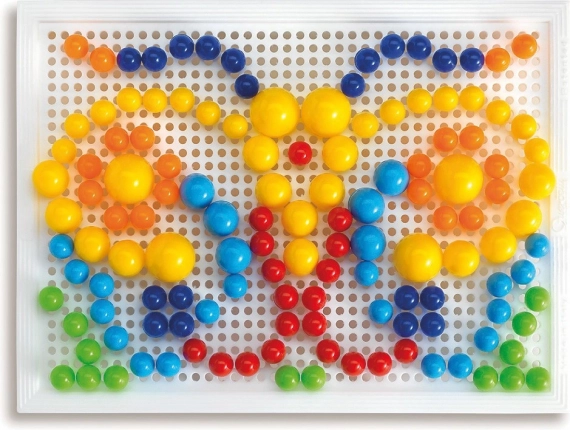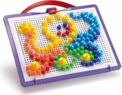 Omiljena dječja mozaika Quercetti donosi sate smislenog veselja. Šareni čepići različitih promjera lako se umeću u izdržljivu perforiranu ploču, što potiče koordinaciju oko–ruka, trenira strpljenje i jača vizualno opažanje boja i oblika. Zahvaljujući pametnom kovčežiću sve je sigurno pospremljeno i spremno za put.