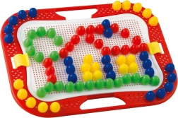 Ovaj kreativni set mozaike donosi djeci od 3 godine naviše beskrajne mogućnosti slaganja slika i uzoraka. Veliki, lako drživi čepovi s glatkom kupolastom glavom umeću se u otvore robusne perforirane ploče smještene u čvrstom okviru s ručkama. Igra potiče maštu, razvija koordinaciju oko–ruka i jača koncentraciju.