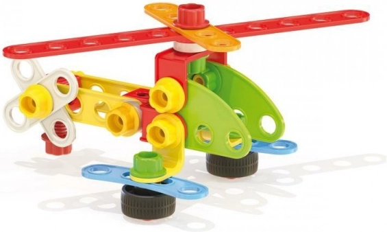 Set sadrži 2D i 3D perforirane dijelove s navojima, vijke, matice i perive gume od EVA pjene. Idealan miks komponenti za automobile, helikoptere, dizalice i još mnogo toga.