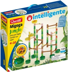 Staza za kuglice Migoga Jungle donosi djeci od 4 godine zabavno učenje kroz igru. Šarene kuglice startaju istovremeno, a potom kreću različitim putevima punim mostova, spirala i tobogana nadahnutih oblicima džungle. Djeca mogu slagati prema uputama ili stvarati potpuno originalne konstrukcije.