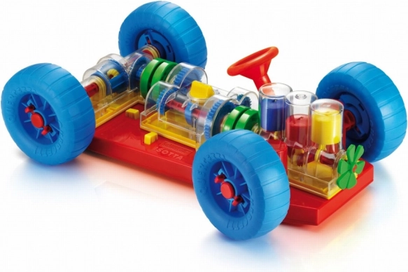Domisleno pomagalo koje izravno potiče djecu i njihove roditelje da otkriju kako pravo auto funkcionira. Sve osnovne mehaničke funkcije ovdje su vjerno reproducirane. Kod motora djeca će vidjeti kako rade cilindri i radilica te kako su spojeni s mjenjačem koji ima funkcionalno prebacivanje s 3 položaja (neutral, 1. i 2. stupanj). Diferencijal prenosi gibanje na stražnje kotače i omogućuje njihovo okretanje neovisno jedno o drugome. Sve mehaničke dijelove lako je pričvrstiti na šasiju, a jednako ih je lako otpustiti posebnim opružnim žutim gumbima. Volan je funkcionalan i omogućuje automobilu skretanje ili parkiranje. Djeca mogu automobil podići sprijeda i straga pomoću posebnih kolica, a okretanjem ručice na prednjima pokrenuti cijeli mehanizam. Pri prebacivanju pojedinih brzina vidjet će kako se mijenja brzina kretanja kotača i cilindara. Pri ubacivanju u neutral uočit će i kako se motor i diferencijal međusobno odspajaju. Namijenjeno djeci od 3 godine. Glavne značajke: osnovne mehaničke funkcije su reproducirane, funkcionalan volan i mehanički dijelovi, za djecu od 3 godine.