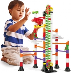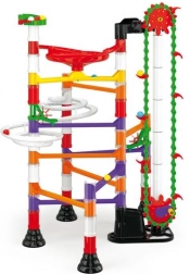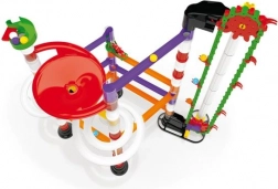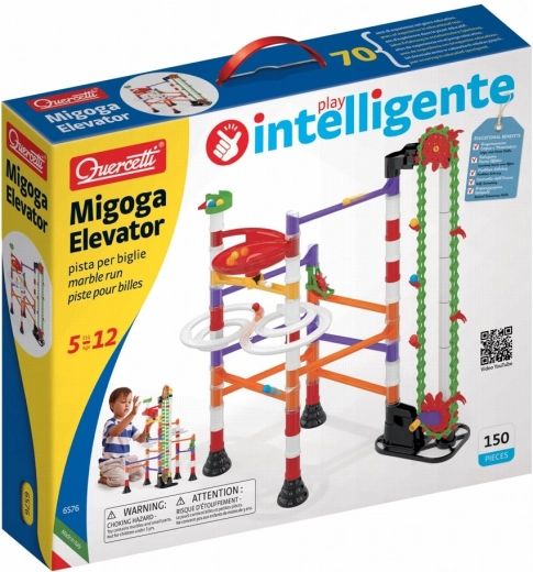 Uz set QUERCETTI Migoga Elevator djeca mogu slagati modele prema slikama na kutiji ili slobodno eksperimentirati s vlastitim dizajnima. Zahvaljujući međusobno kompatibilnim dijelovima nastaju beskrajne kombinacije staza s savršenim nagibom za glatko kretanje kuglica. Vertikalno lančano dizalo vraća kuglice na početak i brine za neprekinutu vožnju.