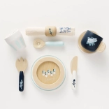 U pakiranju se nalazi sve za malo posluživanje: šalica, tanjurić, čaša, 2 tanjura, nož, vilica, žlica i tekstilna salveta s dekorativnim prstenom. Djeca tijekom posluživanja razvijaju kreativnost, spretnost i uče osnove bontona za stolom. Etički proizvedeno od održivog FSC drva s naglaskom na kvalitetu i sigurnost.