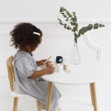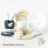 Ovaj kvalitetan dječji set za posluživanje osmišljen je da dugo traje, a ujedno izgleda prekrasno u svakoj dječjoj sobi. Elegantni plavo–bijeli motivi s ilustracijama biljaka, glatke drvene površine i sigurne boje na bazi vode čine ga idealnim izborom za svakodnevnu igru.