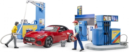 Bruder benzinska postaja sa sportskim automobilom i 2 figurice