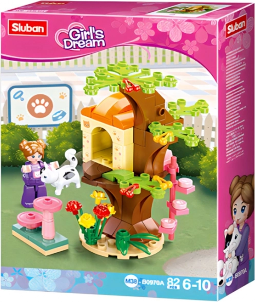 Sluban Girls Dream mačji kućica na stablu: 82 dijela, 1 figurica, srednja razina težine, kompatibilno s LEGO. Kvalitetna ABS plastika i zabava za djecu od 6 godina naviše.
