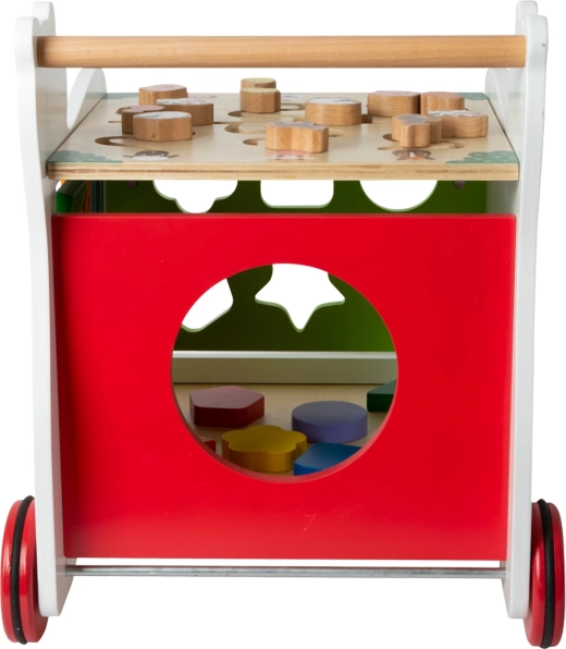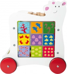 Zahvaljujući gumiranim kotačićima kretanje je tiho i nježno prema svim vrstama podova. Hodaljko dodatno nudi spremni prostor za kocke i sitnice, pa je kutak za igru uvijek brzo pospremljen.