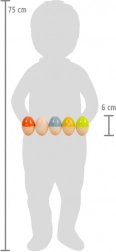 Ova drvena glazbena jaja idealna su za prvi susret sa svijetom ritma i zvuka. Zahvaljujući različitoj ispuni i konstrukciji, svako jaje stvara jedinstven karakter zveckanja, što potiče dječju znatiželju, koncentraciju i slušnu percepciju. Ergonomski oblik lako se drži i najmanjim ručicama.