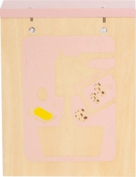 Bogata oprema potiče kreativnu igru: od jajeta na čičak i drvenog maslaca do tekstilnih keksa, lopatice, valjka, lima za pečenje i zdjele. Kutijica sa smjesom za pečenje s dječje sigurnim gumiranim zatvaračem i slikovni recept inspiriraju na osmišljavanje vlastitih poslastica.